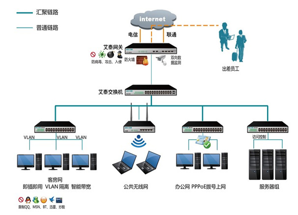 隨著Internet的發(fā)展,互聯(lián)網(wǎng)溝通已經(jīng)成為人們生活中不可或缺的一部分。酒店作為外出游玩或者辦公人士的暫居地,無(wú)論休閑娛樂,搜索資料,收發(fā)郵件,遠(yuǎn)程辦公都成為客人的一個(gè)基本的需求。無(wú)疑,商務(wù)酒店已經(jīng)從傳統(tǒng)的客棧模式轉(zhuǎn)變成以商務(wù)為主、集娛樂、休閑、一體化的多功能中心。因此一個(gè)好的上網(wǎng)環(huán)境已經(jīng)逐漸成為客戶衡量一個(gè)酒店服務(wù)質(zhì)量的重要標(biāo)準(zhǔn)。