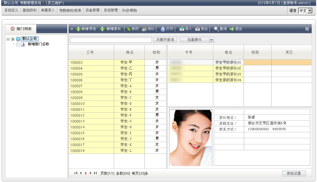 以學(xué)生和家長為基準(zhǔn),可實(shí)現(xiàn)“一對(duì)一”或“一對(duì)多”的卡片與家長對(duì)應(yīng)方式,添加人員檔案可單個(gè)對(duì)指定班級(jí)添加人員,如果人員較多可成批導(dǎo)入人員檔案,如果有新增班級(jí),系統(tǒng)自動(dòng)創(chuàng)建新增班級(jí)并包含人員檔案。