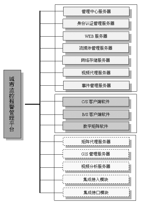 城市監(jiān)控報(bào)警聯(lián)網(wǎng)管理平臺軟件組成結(jié)構(gòu)圖