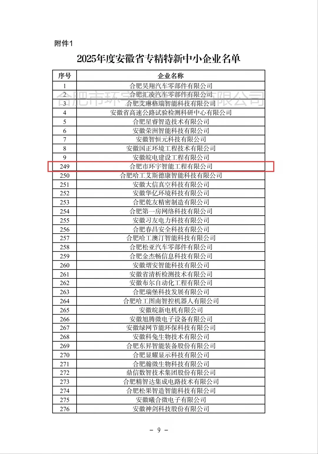 近日,安徽省工業(yè)和信息化廳正式公布了《2025年度安徽省專精特新中小企業(yè)名單》,經(jīng)過企業(yè)申報、逐級審核、第三方評審、社會公示等嚴格程序,合肥市環(huán)宇智能工程有限公司憑借在智能化工程領域的技術創(chuàng)新、專業(yè)服務與精細化管理,成功入選2025年安徽省“專精特新”中小企業(yè)名錄,標志著公司在專業(yè)化、精細化、特色化、創(chuàng)新能力等方面獲得了省級權威認可。