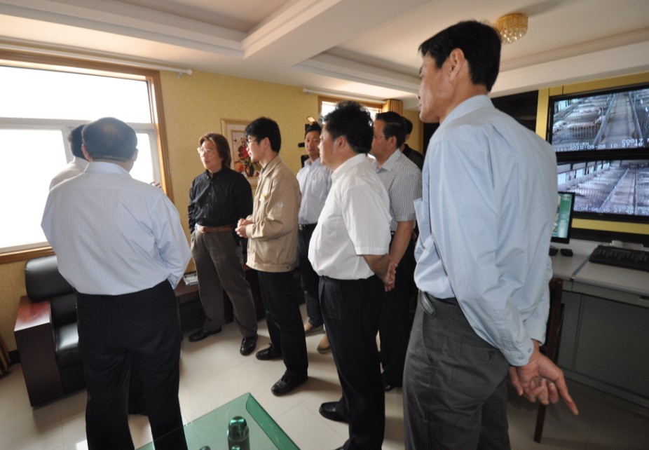 安徽省省委常委趙樹叢副省長、六安市市委常委張韶春市長、市政府楊光祥副市長等領導在安徽省農委副主任、六安市裕安區(qū)區(qū)委高斌書記、區(qū)政府秦遠松副區(qū)長等的陪同下,于5月6日下午專程來九鼎牧業(yè)視察工作。公司接待人員向來訪的領導們詳細介紹了我公司生產(chǎn)、建設狀況,以及未來公司發(fā)展規(guī)劃等。我公司技術人員汪宋寶通過演示監(jiān)控圖像對其講解,趙樹叢副省長、張韶春市長等領導詳細詢問了解豬場防疫工作、技術設備、生豬市場價格等方面的情況,對公司工作給予了充分的肯定,并要求當?shù)卣块T應積極配合支持九鼎公司的項目建設工作,盡快落實種植園區(qū)用地等需進一步明確的工作,同時希望九鼎更好地利用當?shù)貎?yōu)勢資源、運用科學養(yǎng)殖技術,抓住當前有利時機,大力發(fā)展農業(yè)產(chǎn)業(yè)化規(guī)模化生產(chǎn),不斷提高農業(yè)產(chǎn)業(yè)化經(jīng)營水平,把公司做得更大更強。
